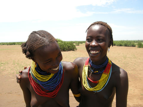 Scarification is practiced by both men and women in the tribe. The women do it to beautify themselves and the men to signify a kill. Both sexes wear a lot of multi colored necklaces and may also have a lower lip plug.